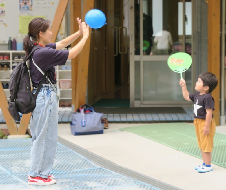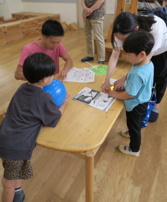 完成したうちわを使って風船を飛ばしました。