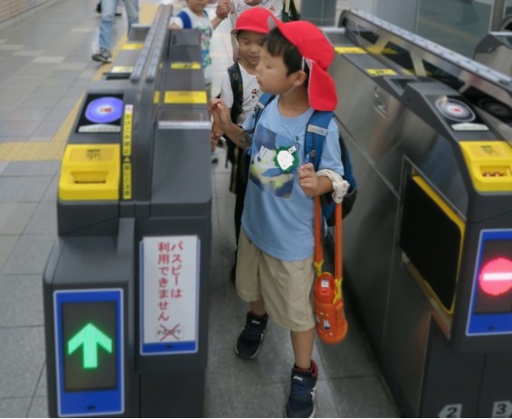 「早く行きたいな!」「プラネタリウム楽しみ!」とわくわくする子どもたち。アストラムに乗って出発です。「こうやってチケットを通すんだね」と興味津々にチケットを通していましたよ。