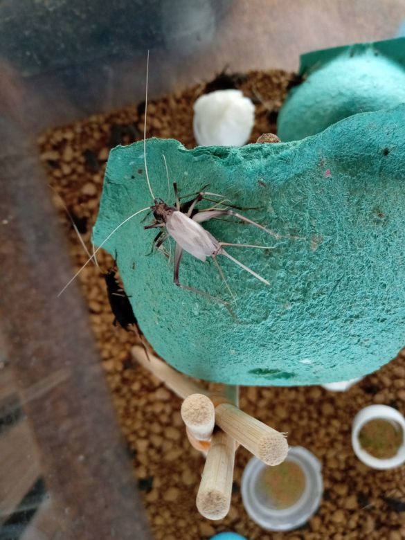 スズムシの水槽をのぞくと、白いスズムシが・・・。