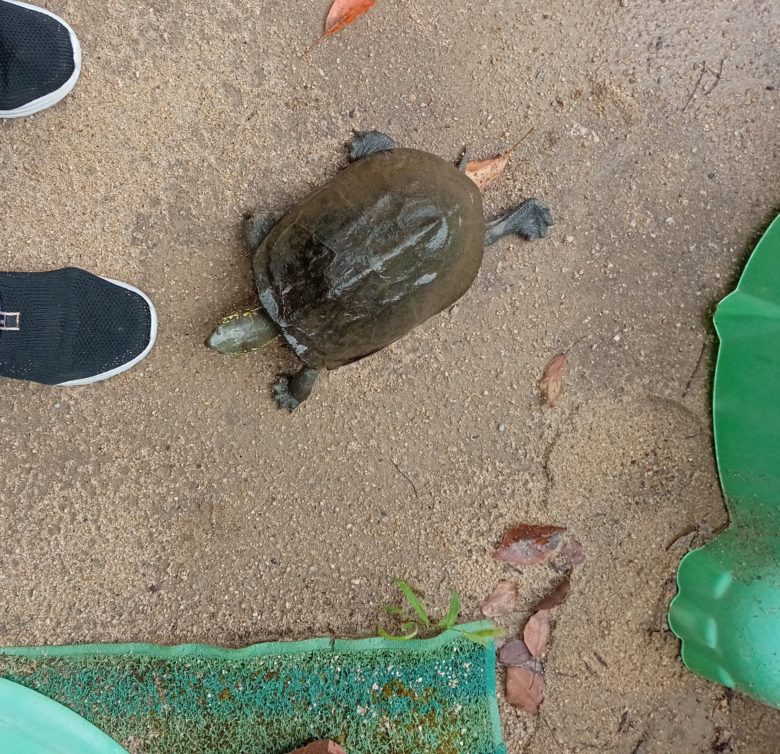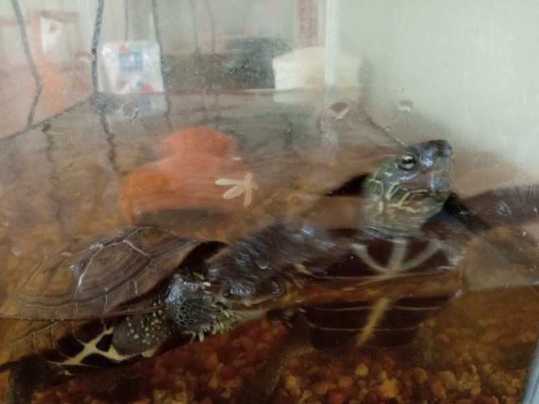 室内のカメ、「いちご」と「れもん」も出してほしいと大騒ぎでした。少しだけたらいの中で遊びました。