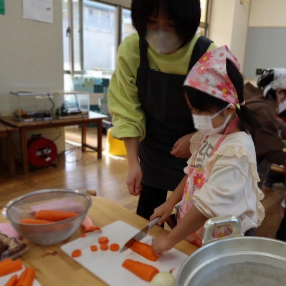 子ども達はこの日を楽しみにしていたので、集中した姿や「やってみたい!」と意欲的に調理する姿がありましたよ。
