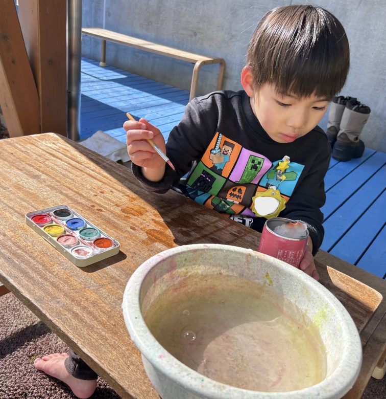 「水たまりに、雪を入れるとどうなるんだろう?」の実験です。溶けるのがジワーとゆっくりで面白かったですよ。