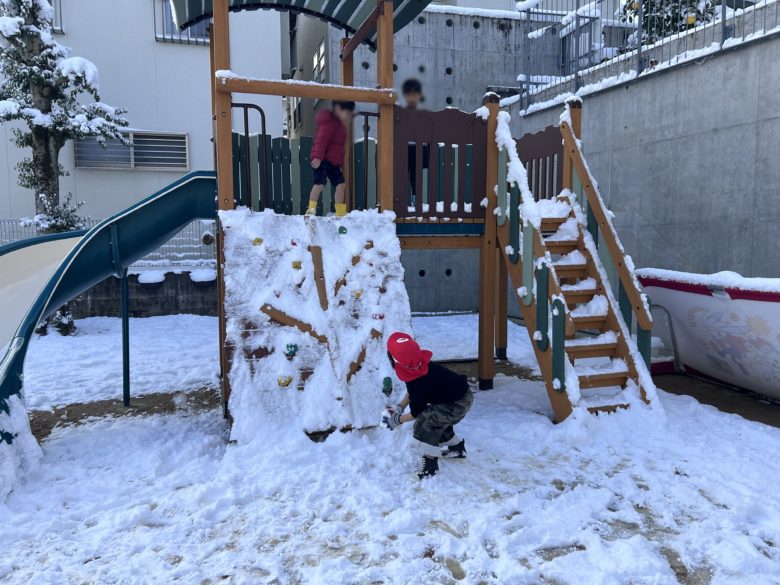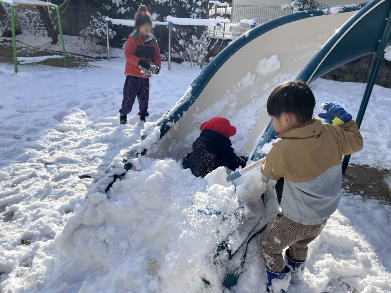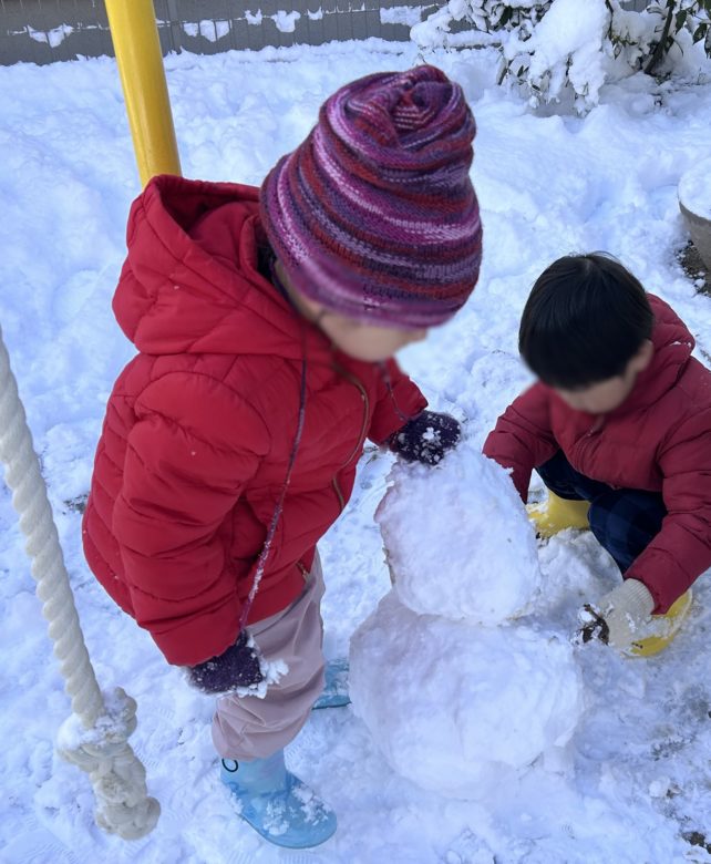週明け、雪がたくさん積もりましたね!あやめ幼稚園の園庭でも、子ども達が楽しそうに雪で遊ぶ姿が見られました。